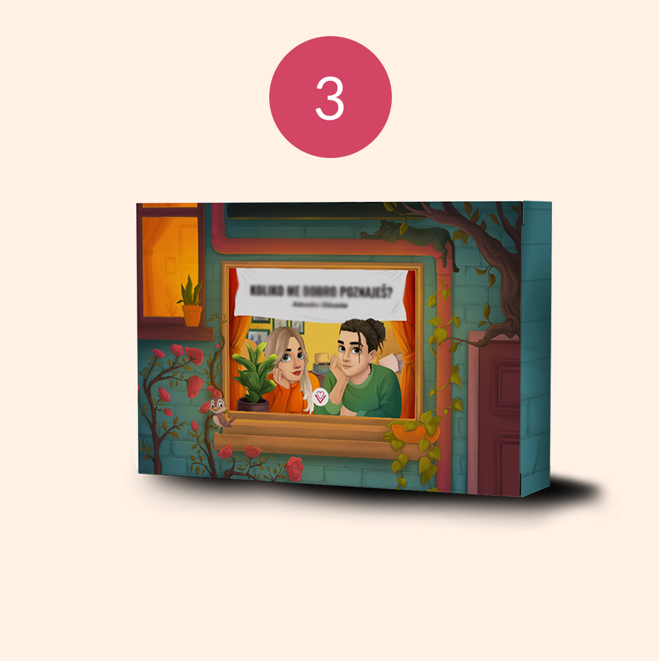 Sa 150 pojmova, 42 nagrade i do 132 izazova, ova društvena igra predstavlja neiscrpan izvor zabave za savršen dejt kod kuće koji otvara vrata razgovorima koji povezuju. Bilo da ste tek ušli u vezu ili želite razbiti rutinu, igra je osmišljena za svaki par koji želi osvježiti odnos, pokrenuti nove teme i otkriti koliko se zaista poznaje.